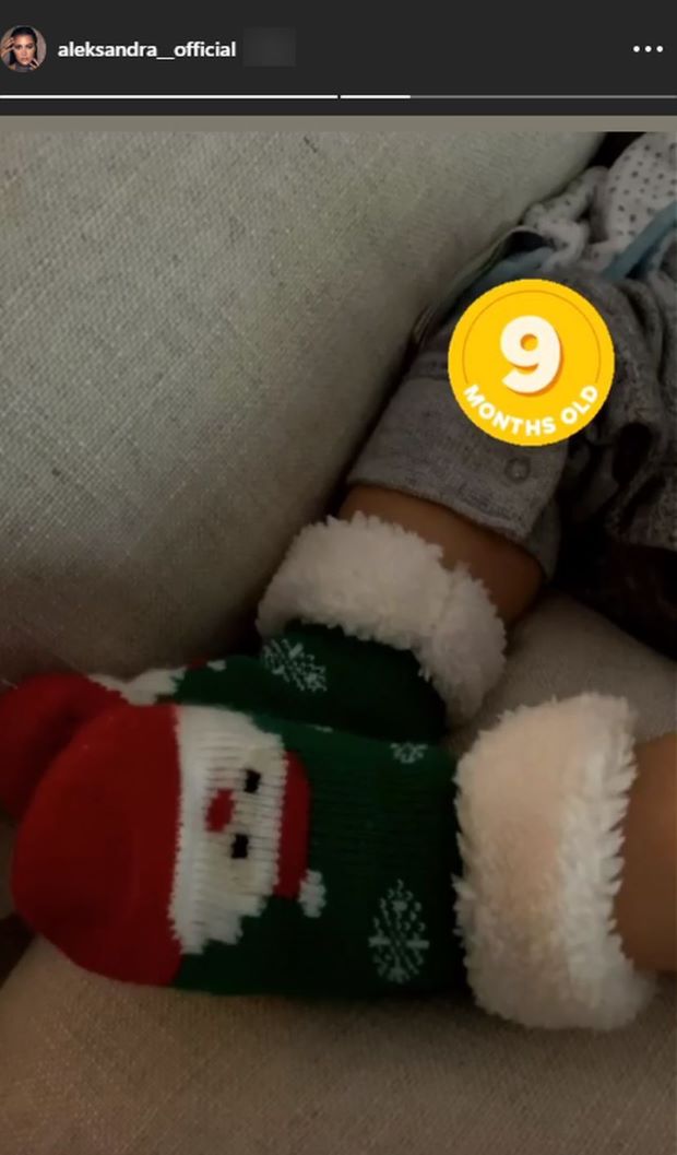 Naime, Aleksandra je na svom nalogu objavila fotku na kojoj se vidi kako njen naslednik leži na krevetu, a pritom je na sebi imao vunene čarape sa novogodišnjim motivima.