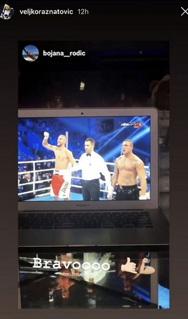 - Bravooo - napisala je Bojana uz fotografiju na kojoj se vidi da je pomno pratila Veljkov meč i pobedu.