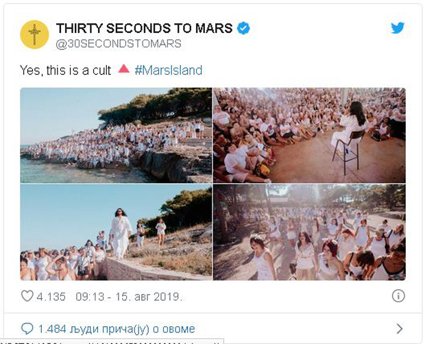A tviter objava benda Džareda Leta "30 seconds to Mars" na kom je napisano "Ovo je kult" sa ilustrativnim fotografijama svakako ne pomaže situaciji.