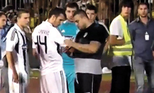 Navijač Crvene zvezde ošamario Ognjena Koromana prilikom "postrojavanja" igračkog kadra. Miloš Radisavljević Kimi skinuo kapitensku traku Marku Šćepoviću