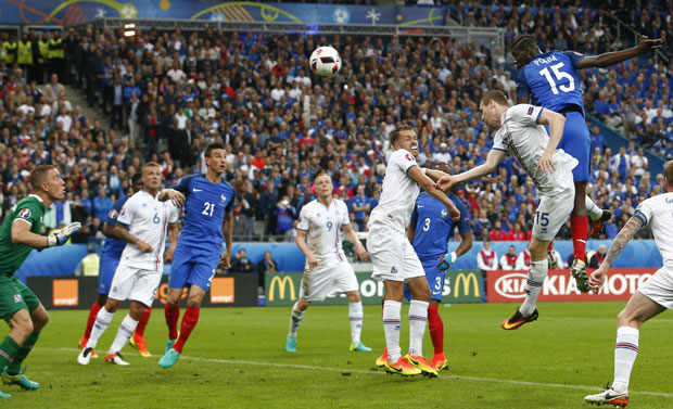Francuska od 13. minuta vodi, a gol je postigao Žiru. Matuidi je poslao odličan centaršut, Olivije bio na ivici ofsajda, ali dobro primio loptu i zatim je poslao kroz noge Haldorsonu za prednost Francuza.