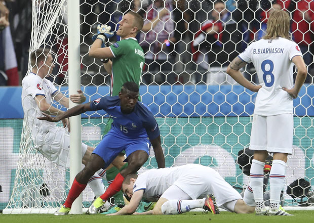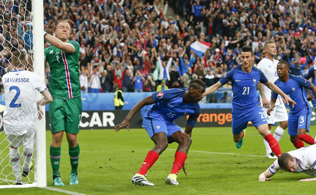 Ne piše se dobro harizmatičnim Islanđanima. Grizman je odlično izveo korner, Pogba fantastično skočio i glavom smestio loptu u mrežu. Posle 20 minuta vode sa 2:0.