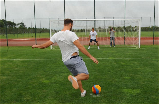 Dejan Savić i zlatni Delfini obišli su Sportski centar, igrali malo basket, a onda na terenu „Mišel Platini“ izvodili jedanaesterce. Usledio je i neformalni ručak, druženje uz priču i zajedničku željuda se svi radujemo posle meča sa Velsom.