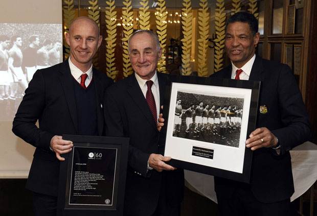 Vladici Popoviću je plaketu u znak sećanja na utakmicu od pre 60 godina uručio Niki Bat, koji je od 1992. do 2004. godine igrao za Mančester junajted, a danas je trener omladinaca. Poseban detalj za sve goste iz Engleske sinoć je bio pogled na štampani jelovnik sa zajedničke večere Zvezde i Mančestera od pre 60 godina na kojem su potpisi igrača oba tima, a koji se kao relikvija i danas čuva u hotelu "Mažestik". Ceo događaj je, između ostalih, organizovala i Ambasada Velike Britanije u Beogradu, a ambasador Denis Kif je takođe prisustvovao večeri.