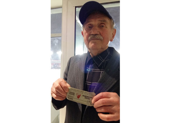 UTAKMICU omladinaca Brodarca i Mančester junajteda je na stadionu Voždovca gledao 84-godišnji Sava Bursać iz Zemuna koji je na Voždovac potegao sa kartom sa meča Zvezda – Junajted (3:3) od pre tačno 60 godina.