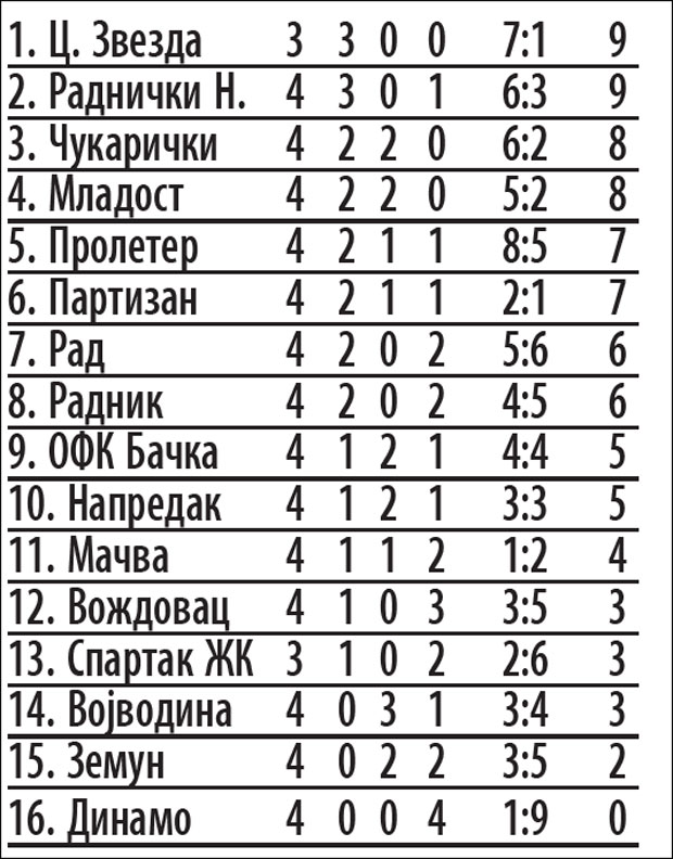 NAREDNO kolo - 18.8.2018: Voždovac - Dinamo, Spartak - Radnički, Napredak - C.zvezda, Čukarički - Proleter, Vojvodina - Bačka, Radnik - Mačva, Partizan - Rad, Mladost – Zemun.