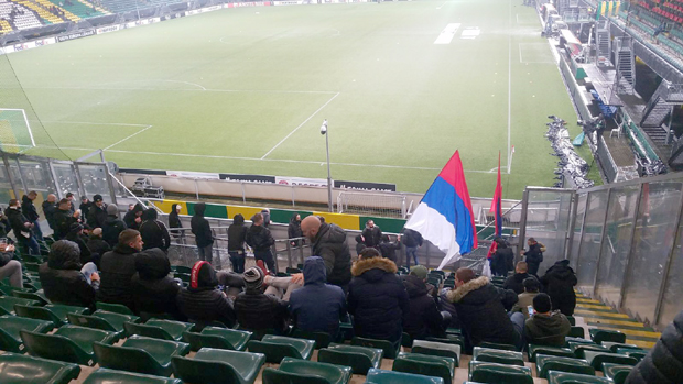 Navijači kluba iz Humske zauzeli su dve tribine na stadionu u Hagu i pružaju gromoglasnu podršku izabranicima Sava Miloševića.