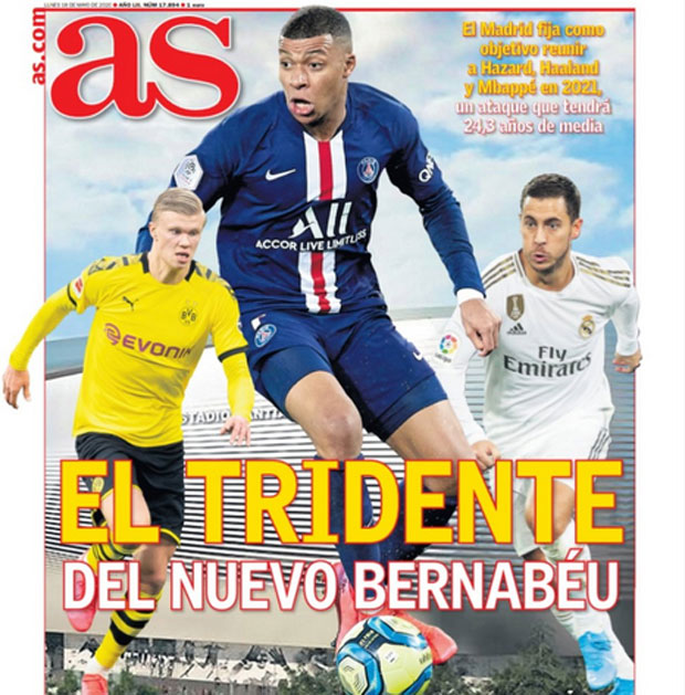 REAL Madrid nije navikao ni sebe ni svoje navijače da mnogo "posti" sa trofejima, pa sprema novi "trozubac" u špicu napada, koji bi u bliskoj budućnosti trebalo da čine Kilijan Mbape, Erling Haland i Eden Azar.