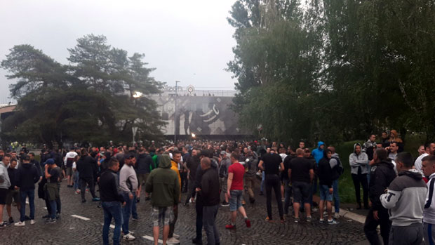 Ni loši vremenski uslovi nisu sprečili navijače da isprate poslednji ovosezonski okršaj Partizana i Crvene zvezde, koji se od 20 časova igra u Humskoj.