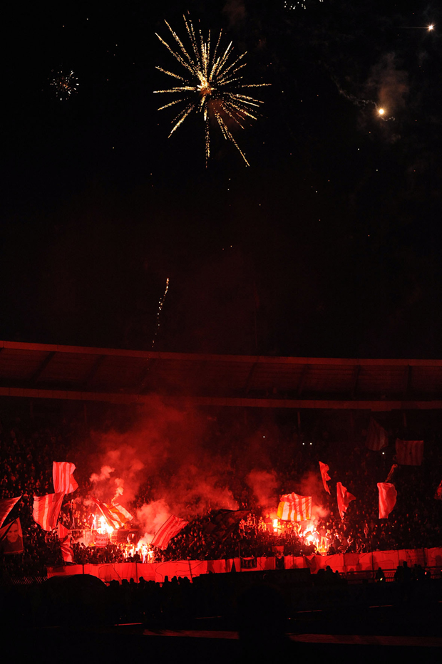 Simbolično je bilo i kada je u 31. minutu bakljadom i dimnim bombama "osvetljena" nova 31. titula. Pušio se čitav stadion, odjekivali topovski udari.