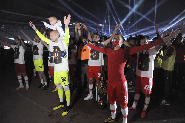 Zaslužili su i fudbaleri i navijači crveno-belih ovo slavlje jer je titula osvojena treći put uzastopno, ponovo ubedljivo i zasluženo