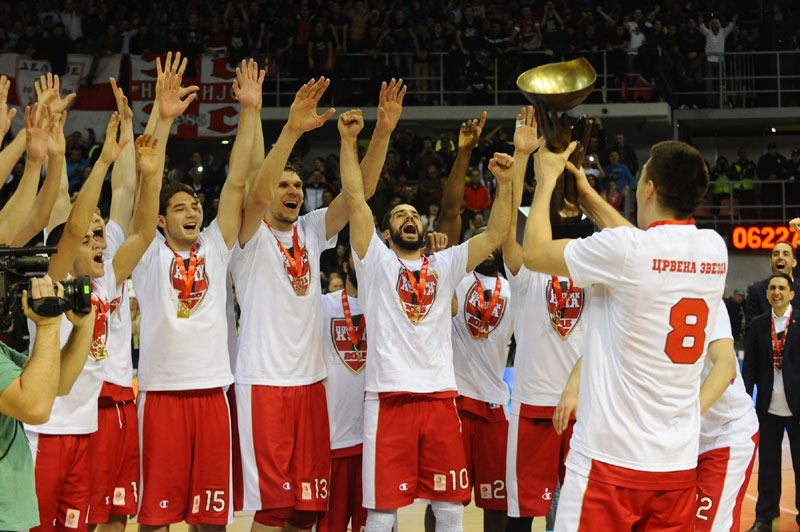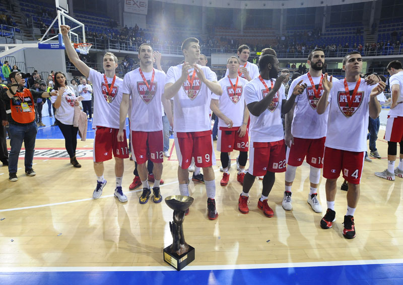 Igrači Zvezde sa trofejom Foto N. Paraušić