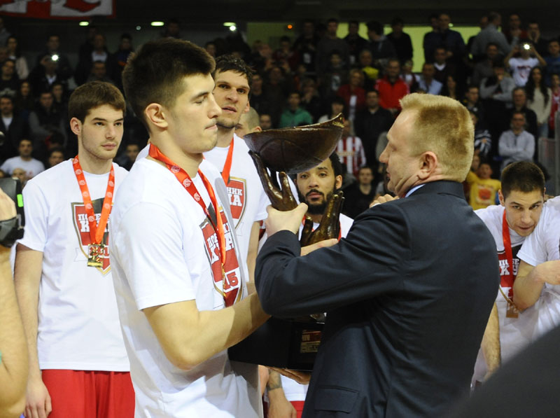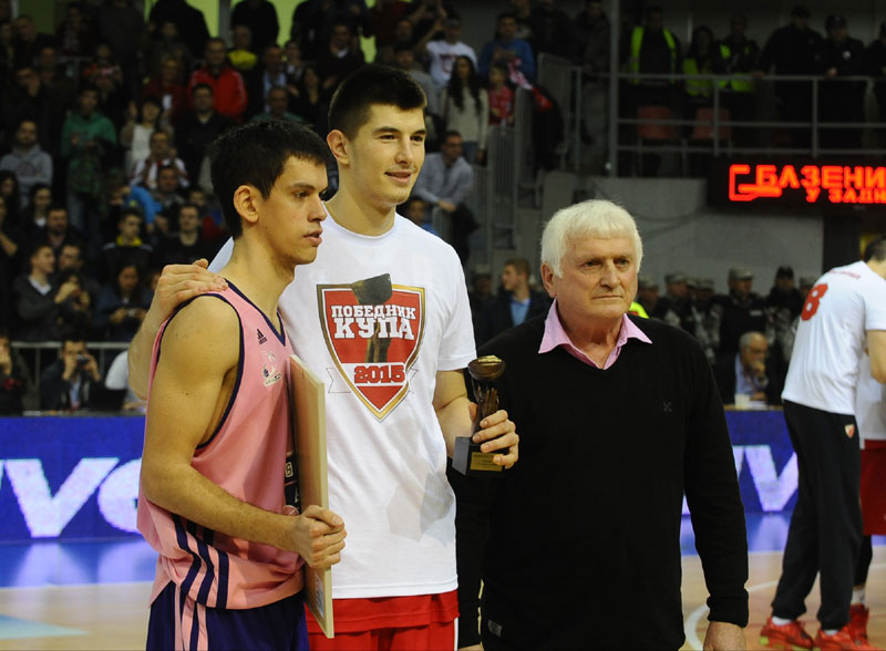 LUKA Mitrović je proglašen za najkorisnijeg igrača i najboljeg strelca finala. Isto broj poena kao i kapiten crveno-bvelih, postigao je i Nenad Miljenović, ali, plejmejker Mega Leksa je proveo na ternu duže, pa je nagrada za prvog strelca otišla u ruke Mitrovića. Njemu su trofeje za MVP i prvog strelca uručili naš reprezentativac Miroslav Raduljica, odnosno Đorđe Korać, brat legendarnog Radivoja Koraća