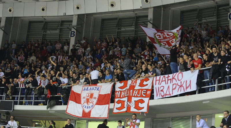 Pošto nisu imali navijačke rivale na drugoj strani, pristalice crveno-belih su same pevale i skandirale.