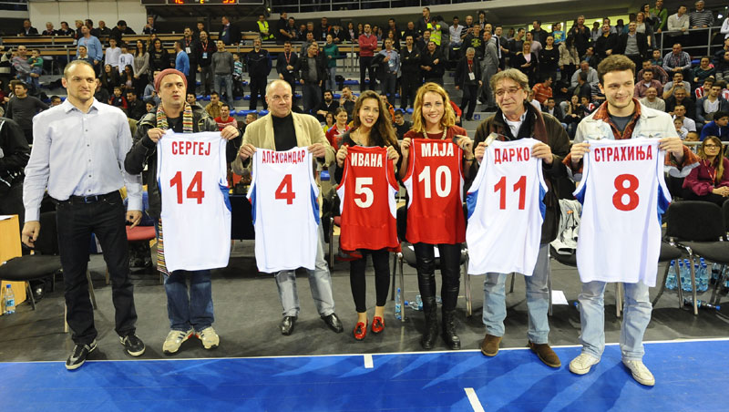 Proslavljeni as i novi potpredsednik KSS Igor Rakočević je uručio dresove reprezentacije Srbije reditelju filma "Bićemo prvaci sveta" Darku Bajiću, kao i glavnim glumcima na čelu sa Sergejom Trifunovićem.