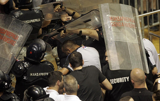 Treneru šampiona Radonjiću nije se svideo kurs strogoće sudijske trojke pri dodeljivanju faulova njegovim igračima, pa je gest širenja ruku kažnjen tehničkom greškom. Preventivno delovanje arbitara na svojoj koži osetio je i Lazić, čiji je ne baš žestoki protest sankcionisan na isti način. U prilagođavanju oba tima lutajućem sudijskom kriterijumu i često neregularnim uslovima u dvorani, najviše je kažnjena košarka. Da nije bilo poteza Veličkovića i Kinsija, oni koji su došli zbog basketa ne bi videli ništa, ali ne zbog dima topvoskih udara bačenih na parket.