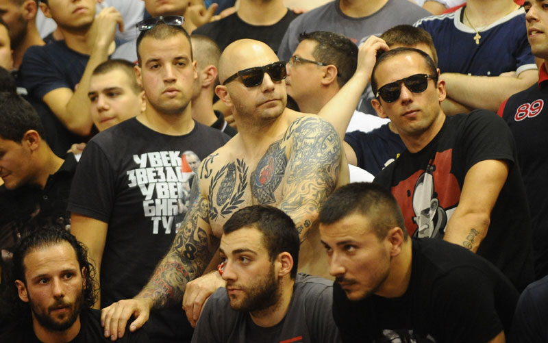 PIROTEHNIKA je ponovo bila u epicentru navijačkog derbi obračuna. Prva baklja sa Partizanove strane sletela je među Zvezdine navijače još pre intoniranja himne. Razmenjene su baklje i tokom pauze između poluvremena, dok su na teren tokom utakmice padale petarde, opasni topvski udari. Kovanice, upaljači i ostali priručni predmeti, među kojima i bočica kapi za nos, bili su toliko česti da i ne ulaze u brojno stanje.