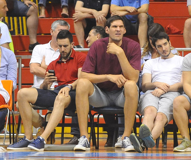 U prvom redu iza koša sedeo je Boban Marjanović, momak koji se pita da li će se naći na tom spisku, u društvu Maika Cirbesa i Vasilija Micića.