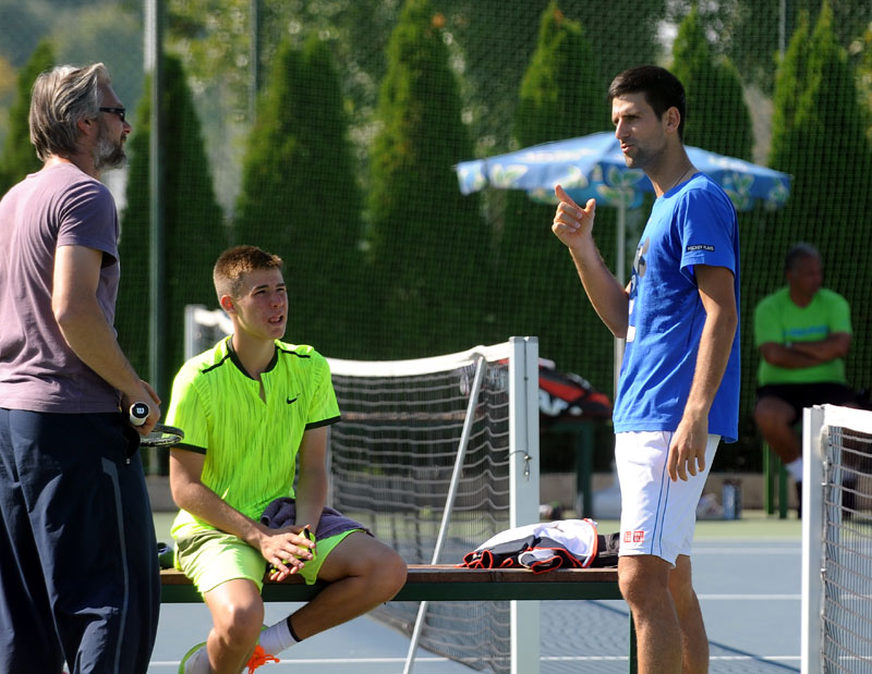 “Malo forhend, ajmo sad na bekhend, pa idemo na serviranje” tim rečima je prvi reket planete Novak Đoković ohrabrivao Viktora Jovića (2002. godište) sa kojim je trenirao na terenima sportskog centra “Milan Gale Muškatirović”.