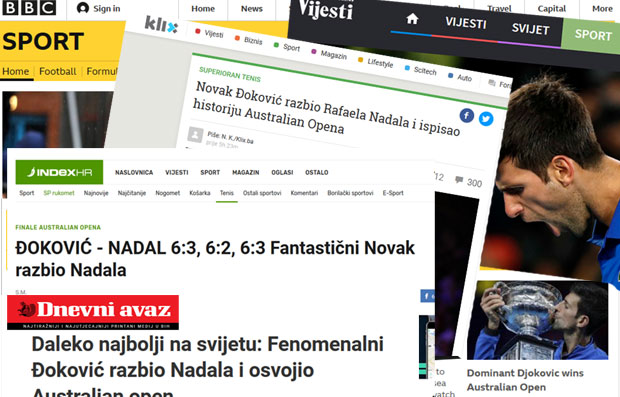Crnogorske Vijesti navode da je "savršeni Đoković deklasirao Nadala" u dominaciji kakva se nije očekivala, ali se gledala dva sata, a portal Kliks iz BiH da je Đoković ispisao istoriju u Australiji razbijanjem Nadala.
