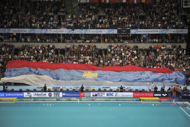 OSETILI su vaterpolisti da uz sebe imaju skoro svih 11.000 navijača. Pre početka utakmica pristalice Srbije razvile su veliku zastavu preko cele tribine, a posle su zdušno bodrili ljubimce, koji su im uzvratili spektakularnom igrom. Publika je sve vreme navijala, a na kraju je u transu ispratila ljubimce kada su napuštali bazen.