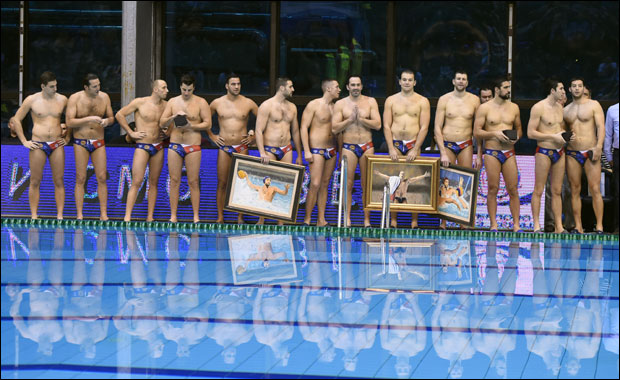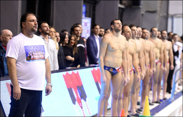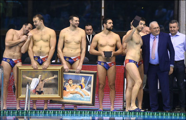 Vaterpolo savez Srbije je pre početka utakmice dodelio priznanja za jubilarne nastupe u reprezentaciji. Priznanja za 100. nastup dobili su Dušan Mandić, Miloš Ćuk i Branislav Mitrović za 200 Stefan Mitrović, Milan Aleksić i Gojko Pijetlović, dok je Filip Filipović nagrađen za 300 nastupa za nacionalni tim.