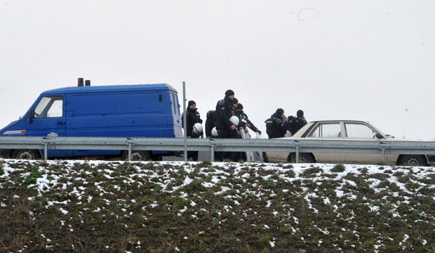 Kako javlja reporter Tanjuga, policija je raspoređena duž Zrenjaninskog puta i na skretanju kod Pupinovog mesta. Policija ne dozvoljava zadržavanje novinarskih ekipa koje se vraćaju nazad.