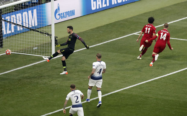 GOOOOOOL! Liverpul vodi, Salah siguran sa bele tačke. Sadio Mane je pogodio u ruku Musu Sisoka, koji je podigao ruku kako bi pokazao saigraču gde da pokrije teren, a to je Senegalac iskoristio i napucao ga za penal u koji Skomina nije imao dilemu. Ima i video-tehnologiju, ona nije promenila odluku. Krenuo je na pravu stranu Ugo Loris, ali je lopta prešla preko njega i završila u golu. Mohamed Salah postiže gol u finalu Lige šampiona, ranije nego što je iko mogao i da pretpostavi...