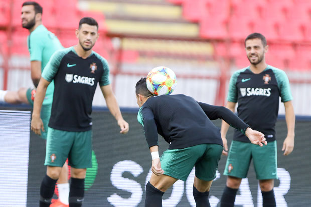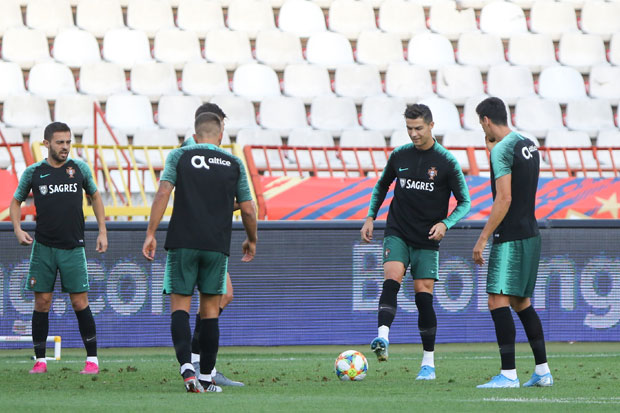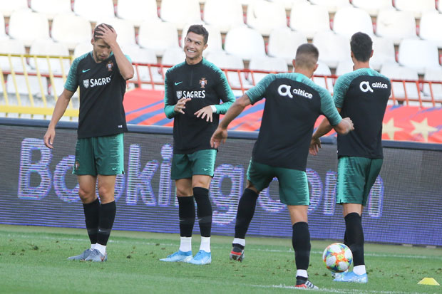 Prilikom izlaska na teren, oko 20 pripadnika portugalskog obezbeđenja, napravilo je maltene živi zid ispred golgetera Juventusa, koji se skoro nije ni video. Ronaldo je zgazio na travu i sa saigračima najpre pimplovao i dodavao se "da lopta ne padne", a onda su otišli do gola na južnoj tribini Zvezdinog doma, gde su igrali popularnu ševu. Sve se odigravalo u laganom ritmu, Kristijanu nije padalo na pamet da proda neku svoju foru, zasprinta ili izvede eventualno makazice. Sačuvao je magiju, možda, za zatvoreni deo treninga, ili što je verovatnije za sutrašnji spektakl.