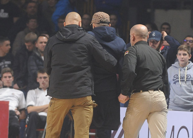 Na 20 sekundi do kraja utakmice, pri vođstvu Cedevite od 74:68, a tokom tajm-auta Partizana dogodio se incident. Igrač gostiju Andrija Stipanović je pogođen u glavu upaljačem koji je došao sa tribine koja se nalazila iza klupe Cedevite.