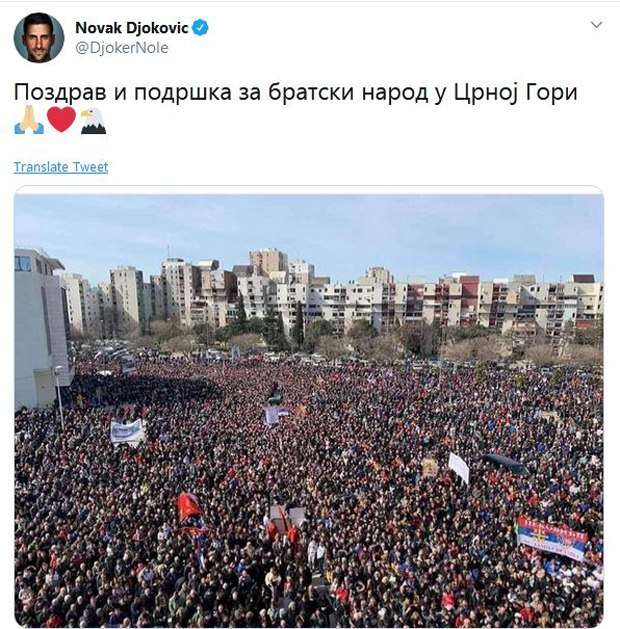 “Pozdrav i podrška za bratski narod u Crnoj Gori”. Na taj način je Novak Đoković uputio poruku podrške narodu koji se bori za svetinje u Crnoj Gori.