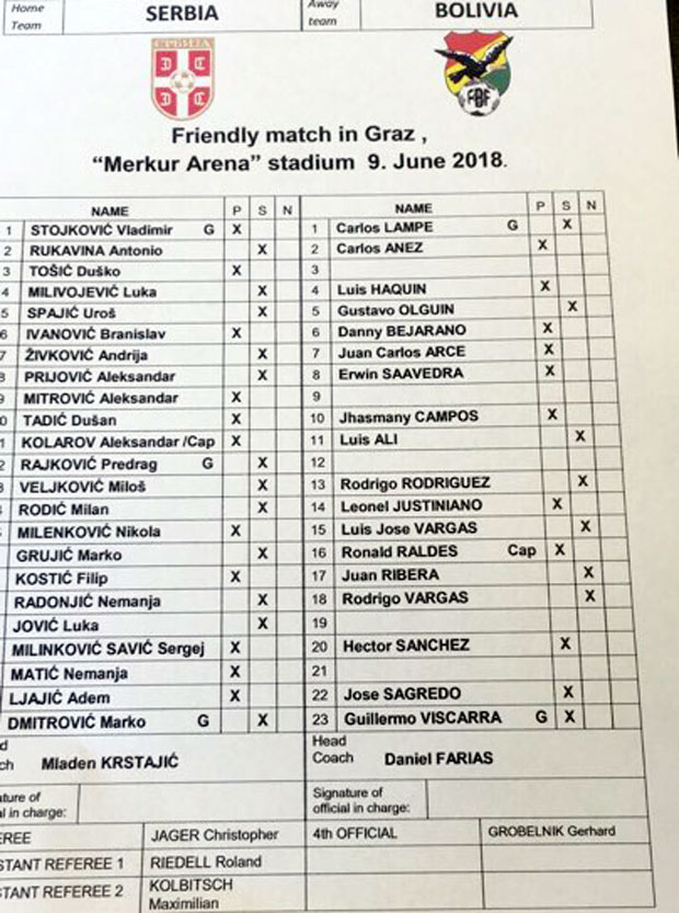 Poslednju proveru pred početak Svetskog prvenstva u Rusiji imaće fudbalska reprezentacija Srbije. Večeras u Gracu igraju protiv selekcije Bolivije.
