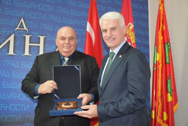 Dragan Marković Palma Huseinu Sahinu poklonio grb grada