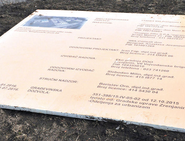Prema onome što stoji na njoj, radovi su počeli 11. januara, a rok za završetak je 11. juli 2016. Investitori su "Sinerteh", "Grupa Zilio" d.o.o. Novi Sad i beogradski ogradnak iste firme, koji čine konzorcijum. Izvođač radova je zrenjaninska "Eko gradnja". Niko od zvaničnika ovih preduzeća nije bio raspoložen za izjave o stanju na gradilištu i hoće li postrojenje proraditi do leta. Iz "Grupe Zilio" ostali su nemi i na pisana obraćanja "Novosti".