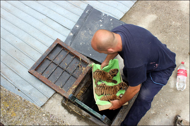 "Sve je proteklo kako treba i tigrići, dve ženke i mužjak, su dobro. Oni će kod majke provesti mesec dana a zatim će biti premešteni u poseban kavez kako bi bili ručno hranjeni i kako bi bolje napredovali", rekao je Jovanović.