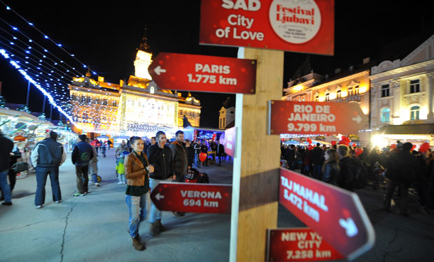 Na Trgu slobode postavljena je jedinstvena konstrukcija od različitog cveća na koju će parovi moći da okače "katance ljubavi", kupljene u suvenirnici. Centralna bina je rezervisana za nastupe novosadskih bendova i di-džejeva. Festival će trajati do 9. marta.