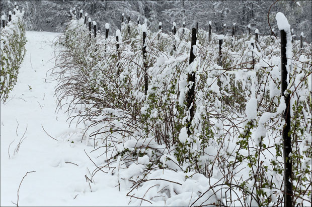 Protekle noći vlažan sneg koji je pao izazvao je lomljenje grančica kod maline, pa to treba sprečiti stresanjem vlažnog snega.