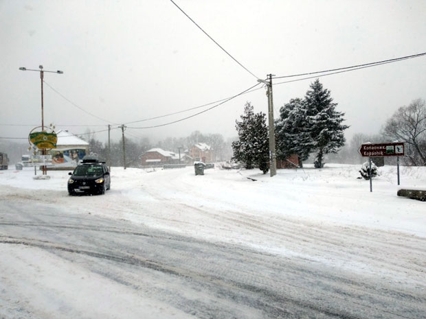 Sneg pada jačeg intenziteta i ima ga na putu, zato se saobraćaj odvija otežano i usporeno za putnička vozila.