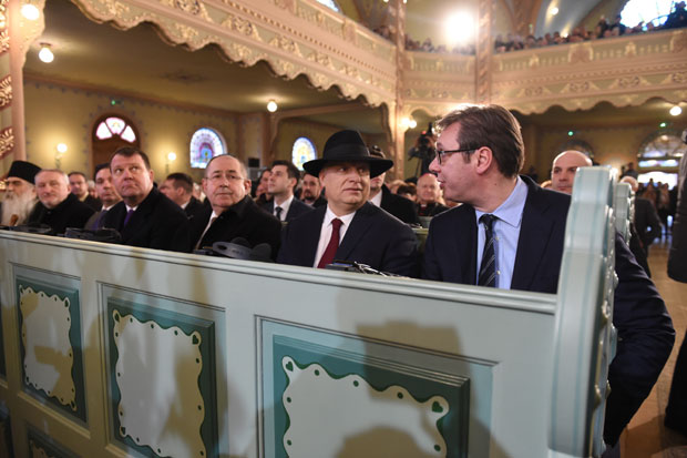 "Sinagoga, druga po veličini u Evropi nakon budimpeštanske, zasijala je kako zaslužuje. Na obnovi smo radili zajedno i naporima i sredstvima i zato posebno hvala Orbanu bez čije podrške i učešća ova signagoga ne bi ovako sijala", rekao je Vučić.