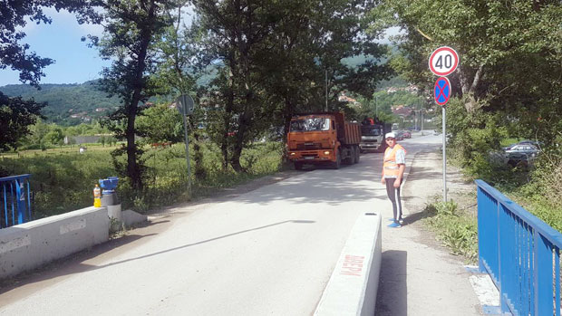 Radnici regulišu saobraćaj tako što komuniciraju telefonom, te se vozila puštaju naizmenično i zadržavanja su minimalna.