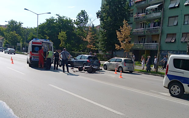 Sudarili su se motocikl i „reno klio“, a oba vozača su se kretala desnom kolovoznom trakom istim smerom, prema Master centru.