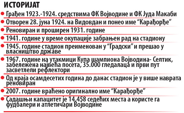 - Predstavnici Kancelarije za javna ulaganja Republike Srbije juče su bili na stadionu i upoznali se sa detaljima u vezi sa funkcionisanjem i stanjem sportskog objekta - kaže Vlaović. - Ceo posao oko rekonstrukcije ili izgradnje novog stadiona ići će preko državnih institucija, s obzirom na to da je vlasnik Republika Srbija, odnosno, grad Novi Sad. Mi, kao fudbalski klub smo pripremili idejni projekat budućeg "Karađorđa", ali i svemu tome će konačnu reč dati stručnjaci.