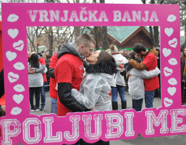 VRNjAČKA BANjA – Na sam Dan zaljubljenih kojeg pravoslavci slave kao Svetog Trifuna, a katolici kao Svetog Valentina, na popularnom mostu ljubavi u centralnom vrnjačkom parku danas je u prestonici srpskog kontinentalnog turizma po 11. put održana tradicionalna manifestacija „Poljubi me“ – jedinstveno takmičenje zaljubljenih parova u ljubljenju.