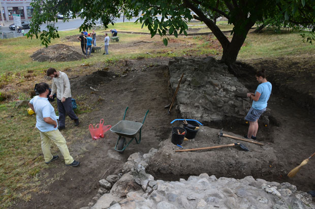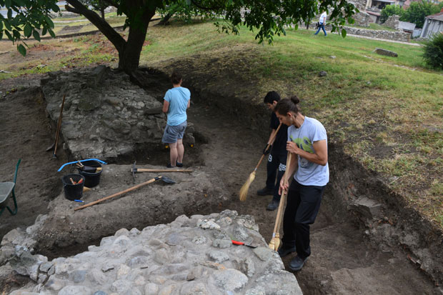 NA severnoj strani grada u pravcu donžon kule, zatičemo arheologe koji pokušavaju da pronađu tragove nedostajućih 50 metara bedema.