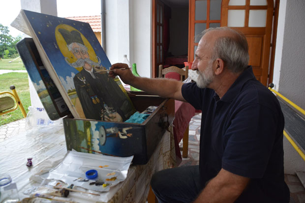 - A šta bih drugo slikao, nego našeg svetog srpskog seljaka? - priča naš priznati naivac Zoran Anđelković Kec, dok pokazuje na prostran "atelje". - Brzo sam ovoga junaka osmislio i obojio, jer četkica sama platno osvaja. Ovaj moj ratnik je radio, trudio se, odgajio unučiće koji su na slici u gnezdu, spremni da "odlete" u svet.