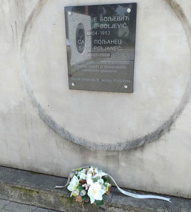 PREDSTAVNICI Arhiva Vojvodine su se prilom boravka u Slovačkoj takođe sastali sa Stanetom Ribičem, predsednikom Udruženje Srba u Slovačkoj, sa kojom su položili venac na spomen-ploču jugoslovenskim pilotima koji su učestvovali u Slovačkom narodnom ustanku i čije se biografije nalaze u stalnoj postavci muzeja Slovačkog narodnog ustanka. Spomen ploča pilotima Arseniju Boljeviću i Savu Poljanecu postavljena je 2014. godine u gradiću Sljač zahvaljujući inicijativi Udruženju Srba u Slovačkoj.
