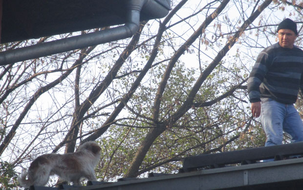 - Nismo mogli da iznađemo pravi način kako da dođemo do psa, mada su nam radnici iz hale ponudili merdevine adekvatne dužine, ali su nam rekli da su oni već pokušavali u više navrata da ga uhvate u čemu nisu uspeli. Prethodnih nekoliko dana su psa hranili, bacajući mu komade hleba i mesa na krov objekta, a vodu je pio iz oluka – objašnjava Maksimović. – Nisam mogao nikome od zaposlenih da naložim da se popenje na krov, jer im to nije u opisu posla, ali se kolega Ječmenica ponudio da on to učini, s obzirom da se ne boji visine.