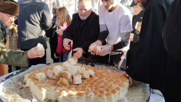 Česnica,prečnika dva metra,u kojoj su bili zlatnik i zlatno srce, dar zlatare „Vitošević, kao i kukuruz, dren i sve ono što obećava zdravlje i berićet, podeljena je Kragujevčanima. Zlatnik je dobila Ankica Markićević,a zlatno srce Svetlana Minić.
