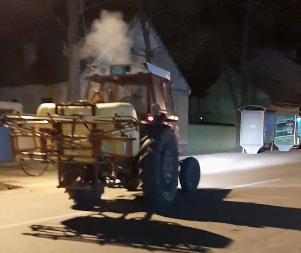 - Biocid se nanosi atomizerima i prskalicama prikačenim na traktore, na ulicama se stvara "magla" od desetoprocentnog rastvora hlora - kaže direktor Željko Madžarev, ne zaboravljajući pomoć AD "Bačka", te Save Davidova i Duška Jokića koji su nam obezbedili traktore, atomizere i prskalice.