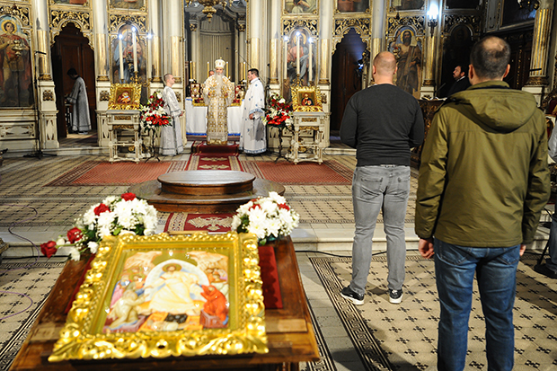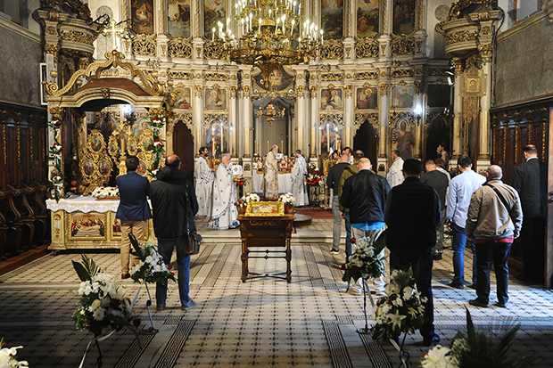 Na dan praznovanja Hristovog Vaskrsenja, u šest sati u ovom hramu osnovanom 1720.godine, započelo je Jutrenje a u nastavku je služena sveta Liturgija